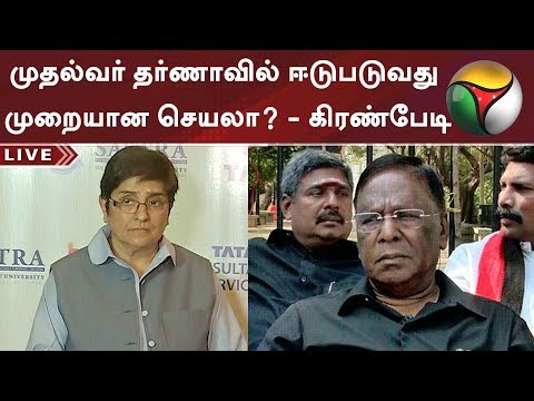 முதல்வர் தர்ணாவில் ஈடுபடுவது முறையான செயலா? - புதுச்சேரி துணைநிலை ஆளுநர் கிரண்பேடி